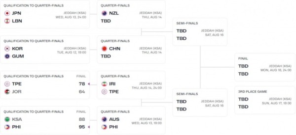 之前的另一场八强赛附加赛,中国台北男篮78比64击败了约旦男篮。如此一来,在C组和D组的8强附加赛对决中,C组全部落败,沙特和约旦都出局了,而D组有3支球队挺进8强(加上此前小组第1直接晋级的新西兰)。