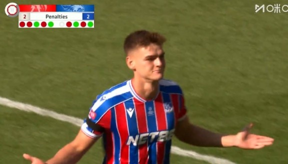 08月11日讯 利物浦vs水晶宫点球大战第5罚,21岁德文尼第五罚直接抽死角,阿利森无可奈何!水晶宫点球大战3-2利物浦总分5-4夺社区盾!