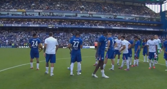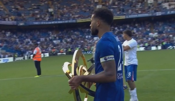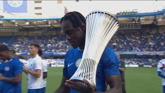 08月11日讯 切尔西4-1AC米兰赛后,主教练马雷斯卡、队长詹姆斯率领全队环绕整个斯坦福桥球场,向球迷展示上赛季获得的世俱杯和欧协联两座重要赛事锦标的冠军奖杯,并向球迷致意,感谢球迷的支持!