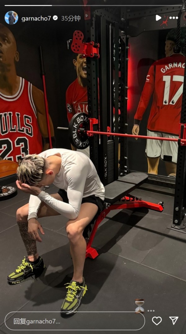 加纳乔社媒晒出自己坐在健身房内的照片,并配上了沙漏的表情符号,罗马诺指出,加纳乔正耐心等待转会切尔西的交易在夏窗晚些时候完成。