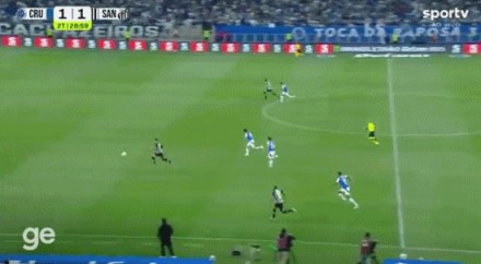 比赛中桑托斯反击机会,内马尔接球后扣倒对方球员后送出传中,不过被另一名克鲁塞罗球员挡出。