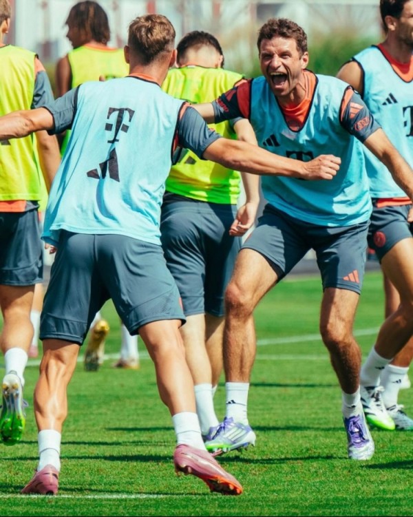 博主社媒晒照:穆勒今日仍在随拜仁进行训练,心情十分不错
