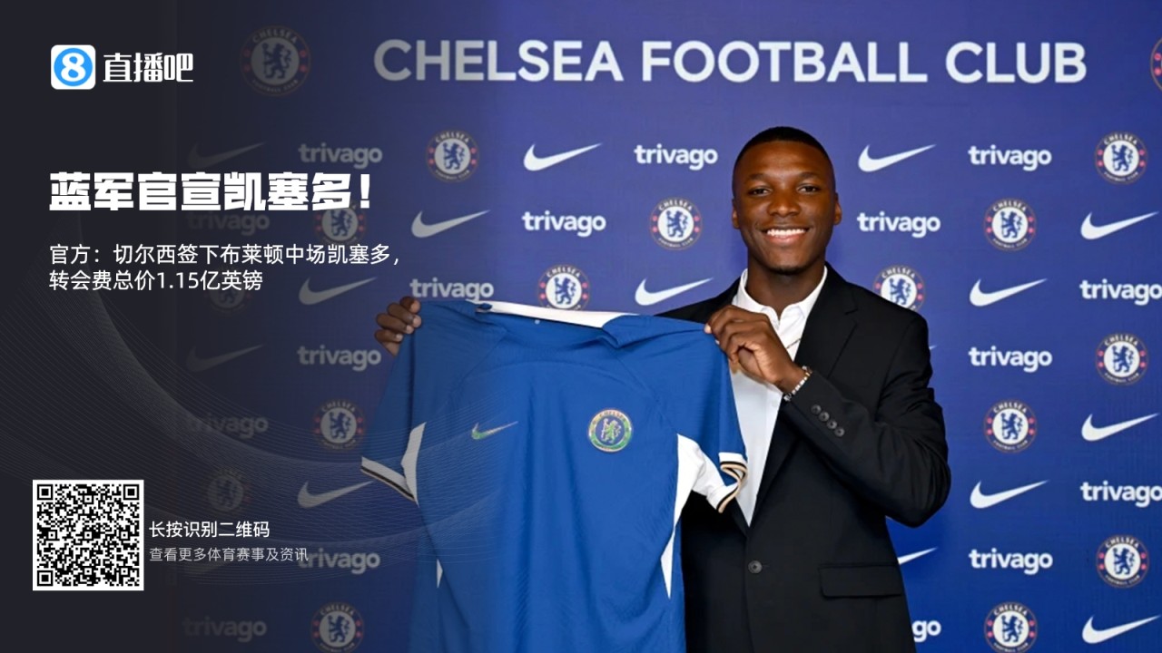 2023年8月15日,切尔西官方宣布签下凯塞多,转会费总价1.115亿英镑。