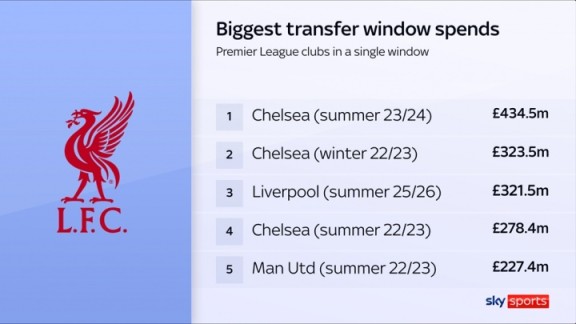 3-利物浦 2025-26赛季夏窗 3.215亿(算上莱奥尼)